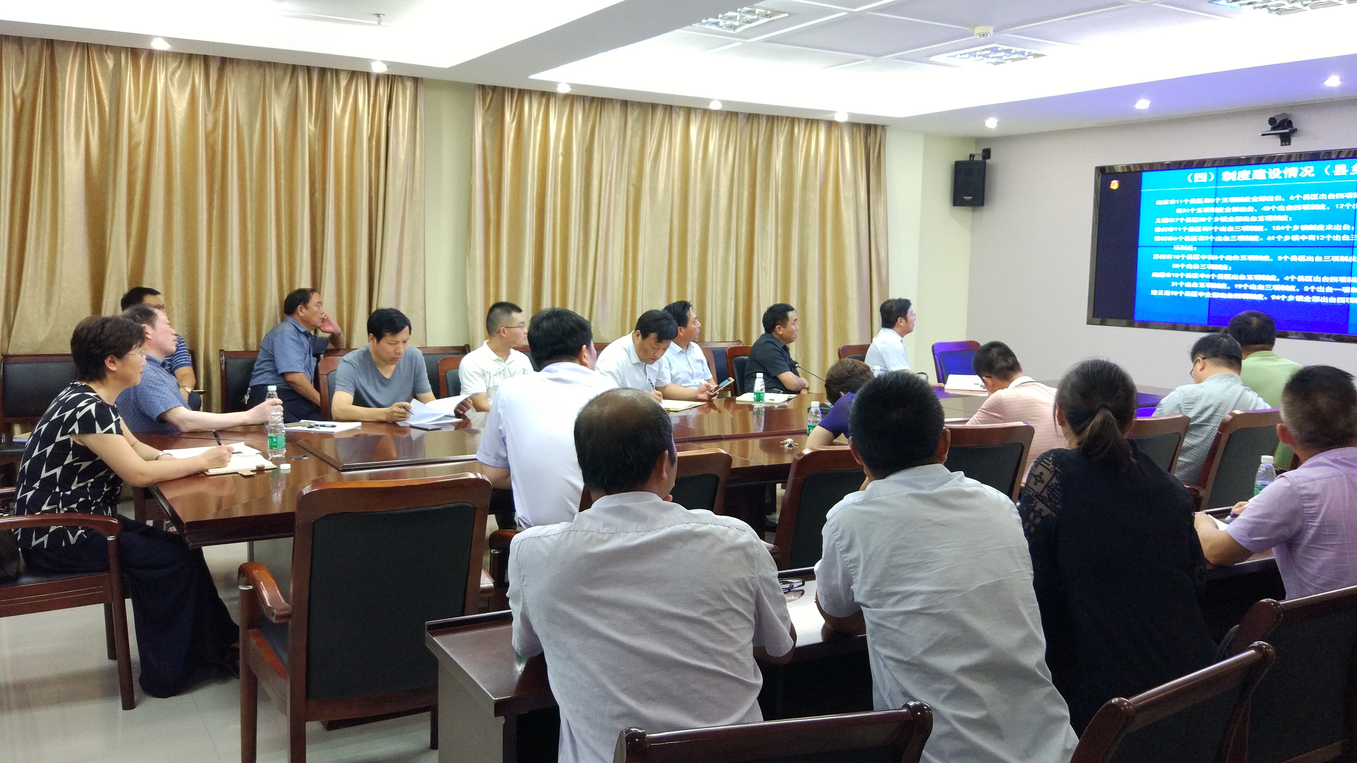 8月28日,为进一步贯彻落实全省全面推行河长制工作,省河长办召开了全省河长制工作视频会议。省河长办主任、省水利厅厅长陈杰主持会议,各市、县(区)设分会场。我县水利局班子成员、局机关各科室主要负责同志,县河长办全体工作人员、镇(区)河长办负责同志出席了射阳分会场会议。