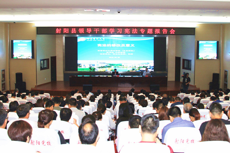6月9日上午,我县在县委党校报告厅举行“宪法的修改及意义”专题讲座。江苏省普法讲师团成员(分团长)、南京审计大学法学院院长程乃胜应邀授课。县委副书记吴冈玉主持讲座并讲话。县委副书记陈铁军出席。 程乃胜以其深厚的理论素养、丰富的实践经验和宽阔的研究视野,对新宪法进行了详细的解读,既有深入浅出的理论阐述,又有实践层面的对策思考,对我县全面推进依法治县具有重要的指导意义。 就进一步加强宪法学习,吴冈玉要求,全面领会讲座内容,深刻把握宪法精神实质。要全面准确领会和把握这次宪法修正案的核心要义和精神实质,真正让学习的过程成为统一思想、提高认识的过程,始终做到政治上同向、思想上同心、行动上同步。认真组织学习,营造尊崇宪法浓厚氛围。要把学习宪法与“大学习、大调研、大落实”活动结合起来,与思想解放大讨论活动结合起来,精心组织学习研讨,常态化开展“法律六进”等群众性法治文化活动,提高群众知晓率,推动宪法深入人心。树立法治思维,全面推进法治射阳建设。要把法治建设摆在更加突出的位置,不断提高运用法治思维和法治方式,依法办事、依法推动发展、依法化解矛盾、依法维护稳定,引导全县上下进一步树立宪法意识、恪守宪法原则、弘扬宪法精神,确保宪法精神在射阳得到全面落实。