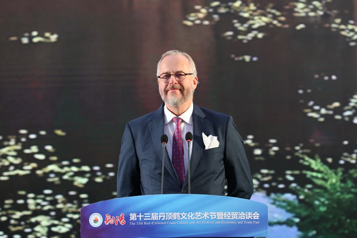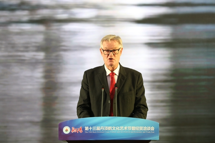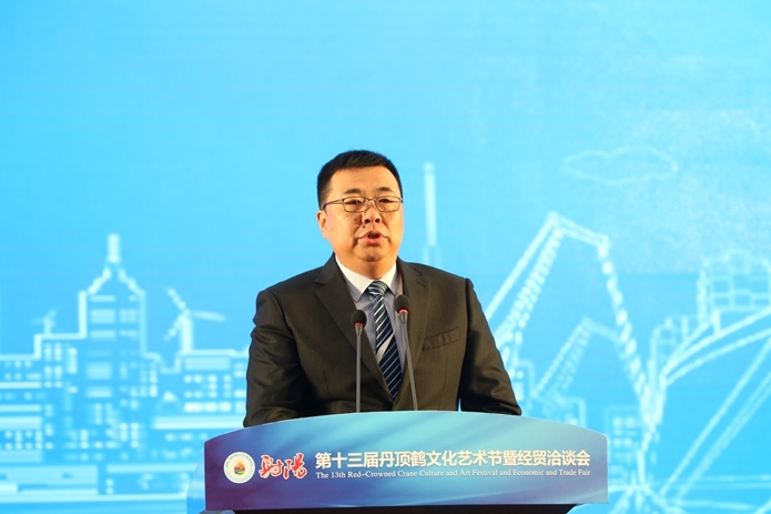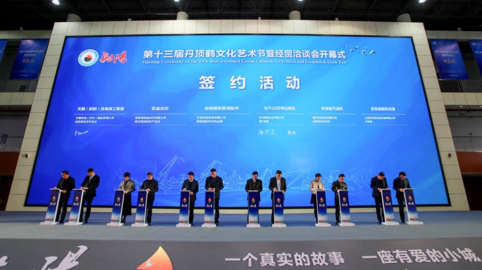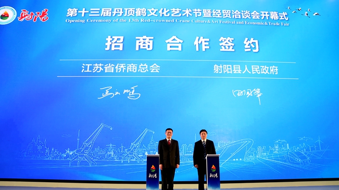唐敬在致辞中代表县四套班子和全县百万人民,向出席活动的各位嘉宾表示热烈欢迎,向长期以来关心支持射阳发展的各界朋友表示衷心感谢。他说,多年来,我们坚持以鹤为媒、以节会友,连续举办了13届丹顶鹤文化艺术节,结出了共建共商、共享共赢的丰硕成果。特别是近几年来,随着一批好项目大项目相继落户,有力助推了全县经济社会稳健向好,连续三年蝉联盐城市综合考核先进、入选全国县域经济百强县,前不久再次被国家工信部评为县域营商环境百强县。在这片土地上,丹鹤文化正成为射阳矢志勇攀新高的重要动力。坚持培大育强“3+3”主导产业,全力打造沿海战略性新兴产业高地;相继建成可供万人同游的千鹤湖公园、国内第二家安徒生童话乐园等一批标志性城市精品工程,恒大、碧桂园等地产巨头纷纷入驻,城市经营效益连续多年位居全市第一;拥有全省一流的教育水平,全市领先的医疗及养老条件和享誉国际的文化供给,“一全员四托底”的保障制度全省推广,人民生活质量持续提高,射阳正成为资本关注、人才向往、客商青睐的创业创新高地。在这片土地上,丹鹤文化正成为射阳汇聚优质资源的重要引擎。依托承接南北、内联腹地、通江达海的交通优势,射阳空港商港渔港竞相崛起。全省首条以地方主导建设的盐射高速,建成后将与盐城高速高铁网无缝对接,全面融入上海1.5小时、南京2小时、北京3小时经济圈。同时拥有两个省级经济开发区和一个市级特色专业园区,拥有国家级科技企业孵化器、南京大学高新技术研究院、远景大数据中心等一批创新载体,拥有史上力度最大的人才新政,为高质量发展积蓄了源源不断的强劲动力。在这片土地上,丹鹤文化正成为射阳构建和谐共生的重要平台。独特的红色文化、湿地文化、海盐文化、移民文化在这里积淀交融,孕育了和谐包容的人文底蕴,凡人善举、先进典型不断涌现,形成了择善而从、积极向上的社会风尚。当前,射阳正以前所未有的开放胸怀,迎接每一位前来投资兴业的各路客商,射阳将竭尽所能提供精准、悉心、周到的服务,让大家感受到一诺千金的诚信、公正透明的法治、高效便捷的服务、宾至如归的热情。