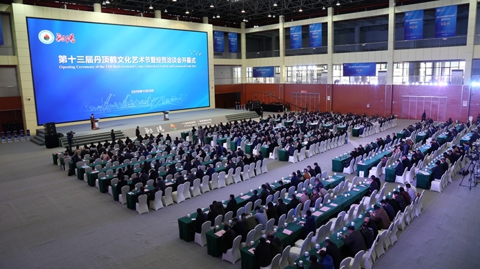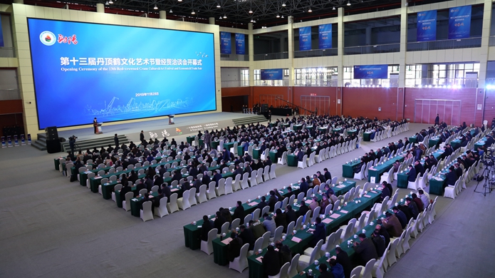 11月28日上午,射阳第十三届丹顶鹤文化艺术节暨经贸洽谈会在县全民健身中心开幕。