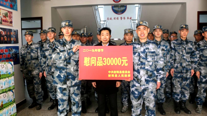 图为县委副书记陈铁军率队慰问驻射部队官兵,向官兵致以新春问候。