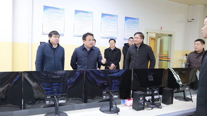 图为县委书记唐敬在县广播电视台现场查看了播出中心、融媒体新闻宣传指挥中心,