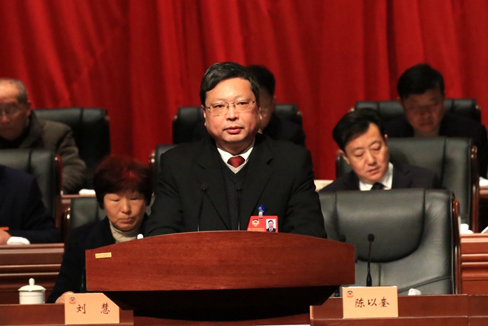 [图]陈以奎作政协射阳县第十三届委员会常务委员会提案工作情况的报告