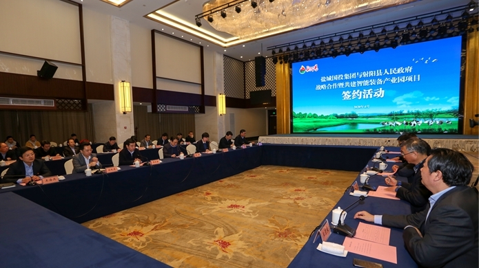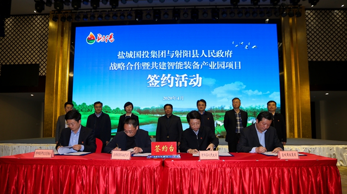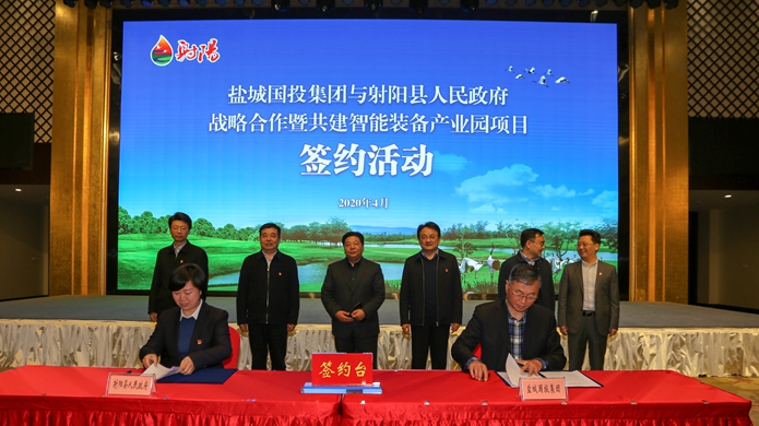 4月8日下午,盐城国投集团与射阳县人民政府战略合作暨共建智能装备产业园项目签约活动在县人才公寓举行。盐城国投集团董事长戴同彬、县委书记唐敬出席活动并讲话。县委副书记、县长吴冈玉主持,盐城国投集团总经理陈榕、县人大常委会主任季晓春出席。