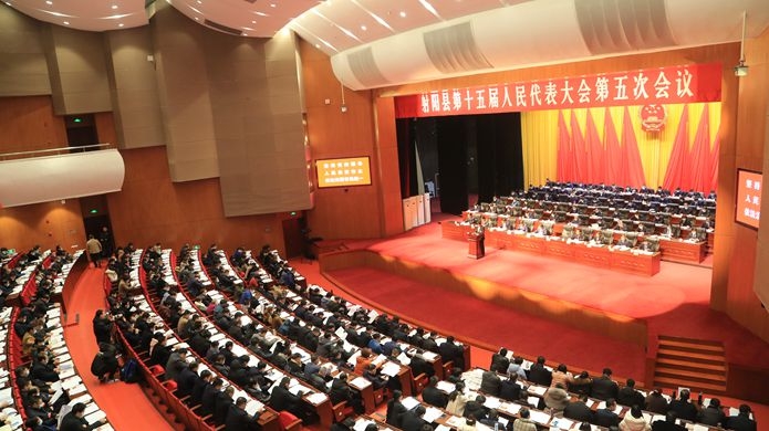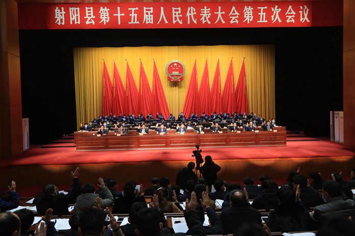 上午8时30分,季晓春宣布:射阳县第十五届人民代表大会第五次会议开幕。会场全体起立,奏唱国歌。