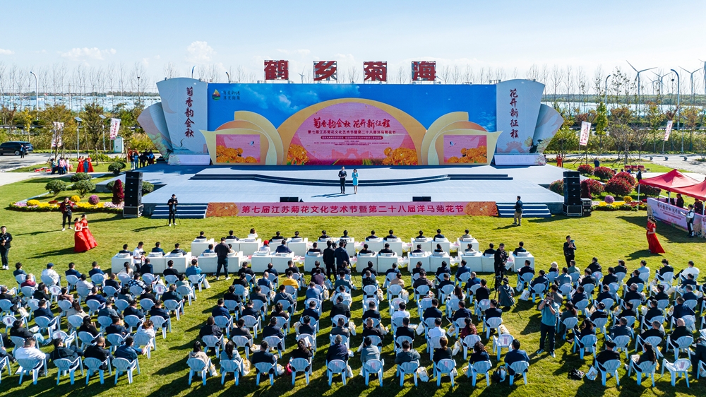 10月20日上午,第七届江苏菊花文化艺术节暨第二十八届洋马菊花节在鹤乡菊海菊文化广场拉开帷幕。来自市文广旅局、市农业农村局、市卫健委等部门相关领导,知名高校、行业协会的专家学者以及合作客商、新闻媒体等300多名嘉宾齐聚射阳,共享“菊”文化饕餮盛宴,共同感受丰收喜悦。县委书记吴冈玉出席并致辞。