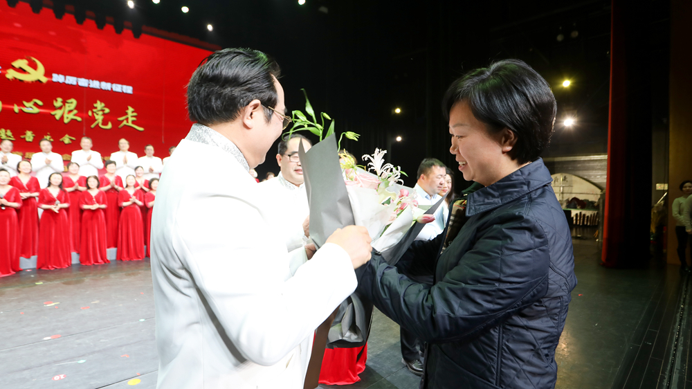 在丹顶鹤文化艺术节暨经贸洽谈会举行期间,11月19日下午,《不忘初心跟党走》主题合唱音乐会在县杂技艺术中心精彩上演。县委书记吴冈玉、县人大常委会主任崔晓荣与我县社会各界人士代表欢聚一堂共同观看演出,回顾辉煌党史,传承红色基因,凝聚奋进力量。