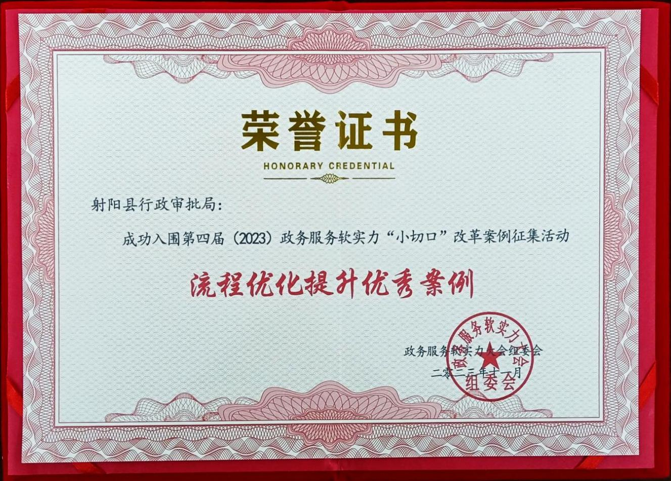 日前,射阳县行政审批局从河北省雄安新区举办的2023第四届政务服务软实力经验交流大会上捧回了“全国政务服务‘小切口’改革优秀实践案例”奖牌。本次会议发布了《全国政务服务“小切口”改革优秀实践案例集》,系列案例从“小切口”破题,于“细微处”用功,射阳县行政审批局成功入围第四届(2023年)政务服务软实力“小切口”改革案例征集活动流程优化提升优秀案例。