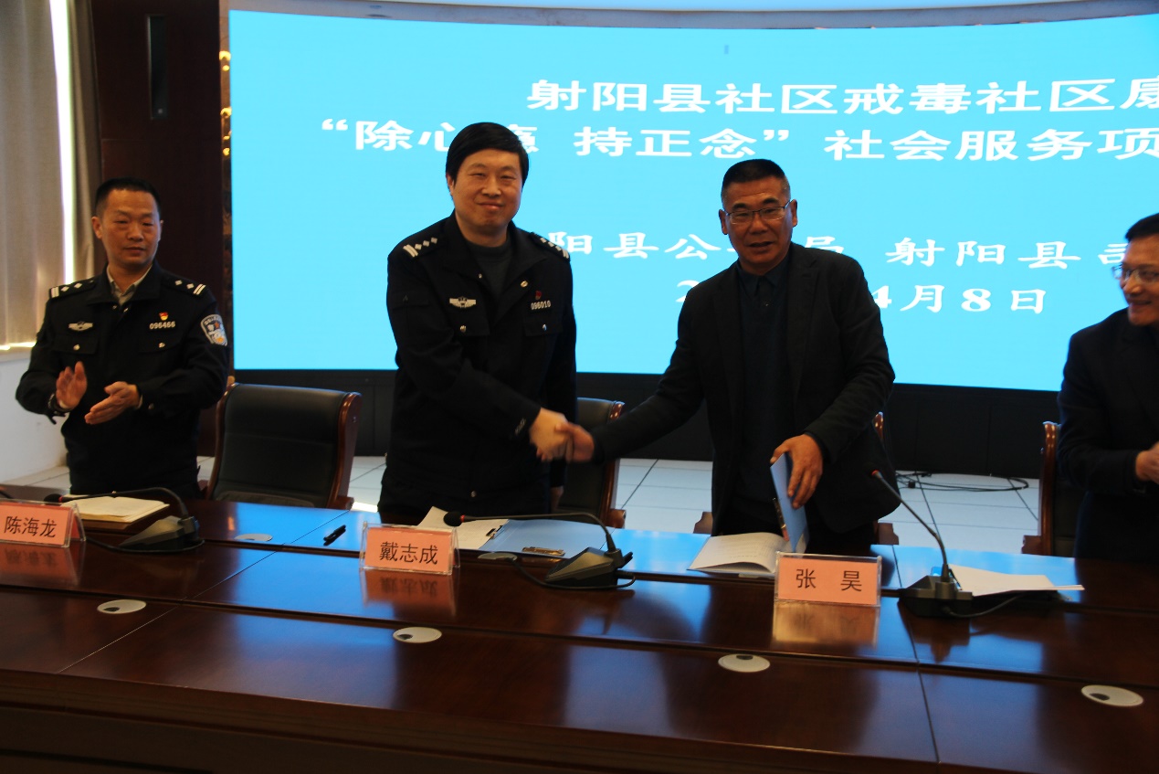 会上,戴志成与张昊签订《社会服务项目书》,该项目书约定,通过个案辅导、家庭辅导、小组工作、学校活动以及社区活动等社会工作方法,充分利用社区资源,协调各方力量帮助涉毒人员戒毒和康复,并教育动员社会民众远离毒品、健康生活。