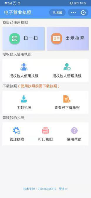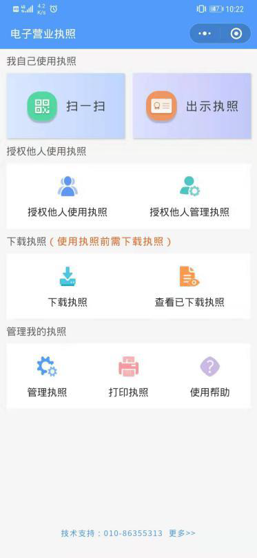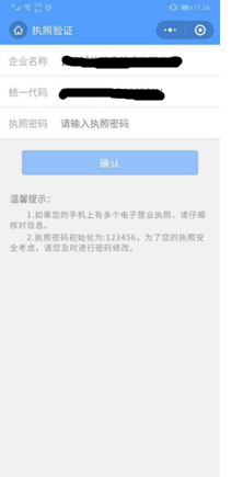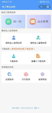 1、使用该功能时,请确保已经在手机微信APP或支付宝APP已经安装 “电子营业执照”小程序并且领用电子营业执照。