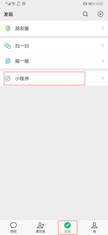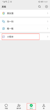 2) 在“发现”的最下方点开“小程序”