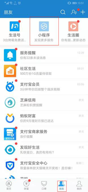 2) 在“朋友”的最上方点开“小程序”