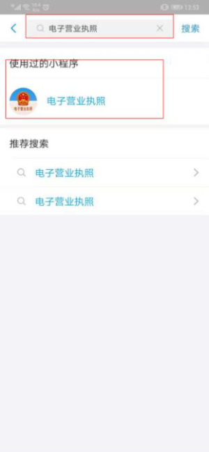 支付宝中搜索“电子营业执照”支付宝小程序安装步骤: