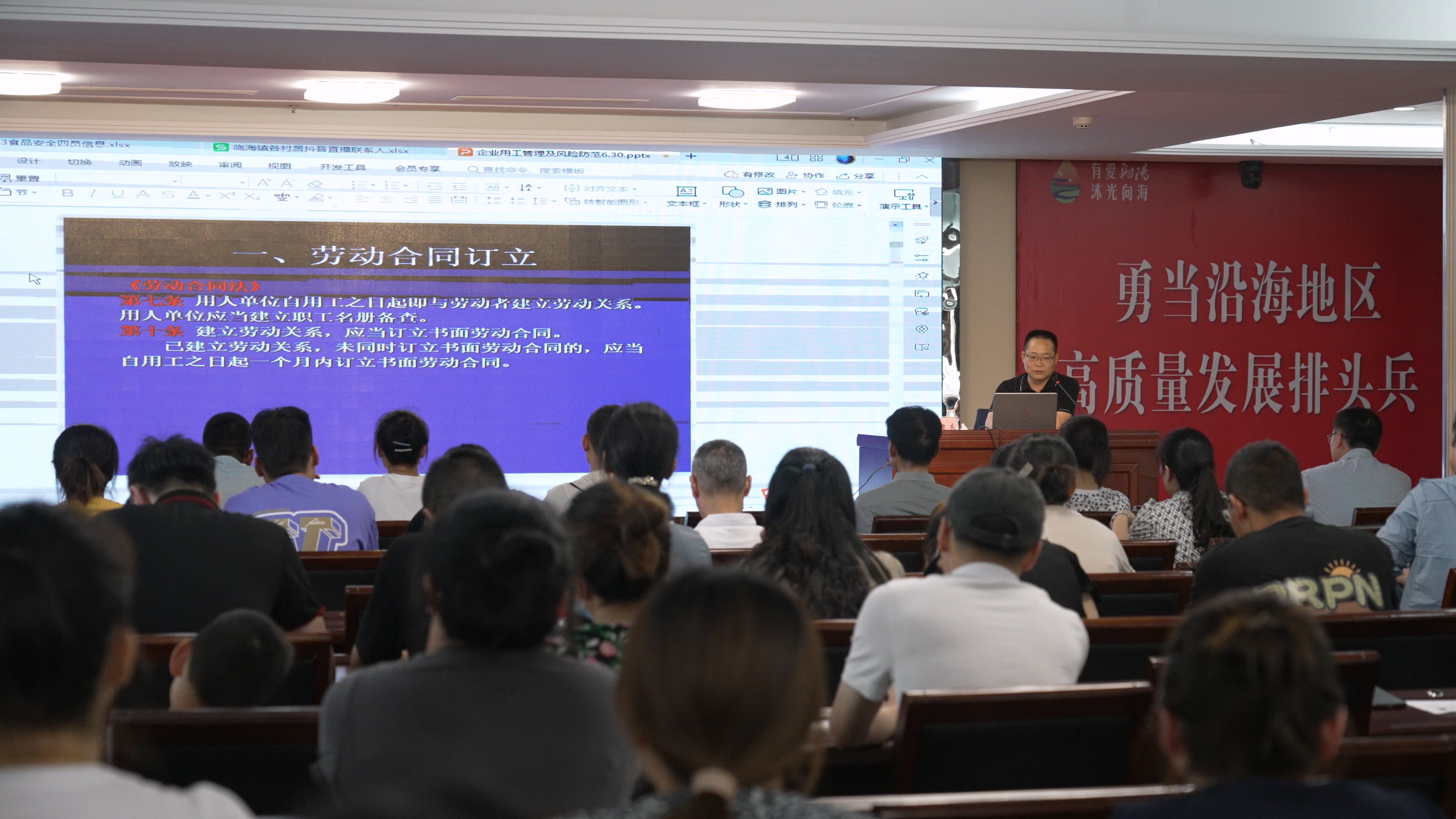 为进一步提升企业劳动用工管理水平,妥善防范和处置劳资纠纷,积极构建县域和谐稳定劳动关系,7月5日、7月14日下午,县人社局分别在盐城市纺织染整产业园和海河镇举办劳动保障法律法规宣传和企业用工风险预防讲座,镇调解中心全体工作人员,辖区内企业负责人和劳资员参加会议。