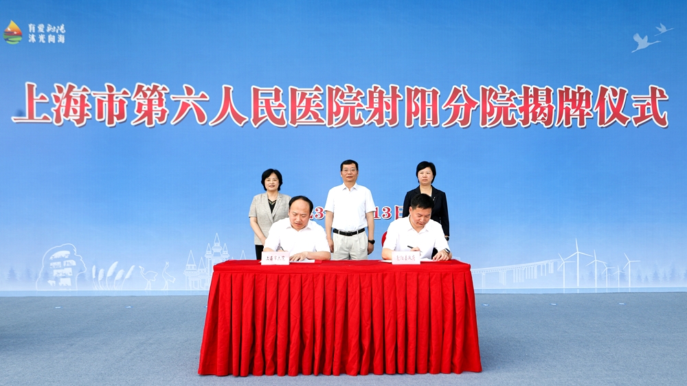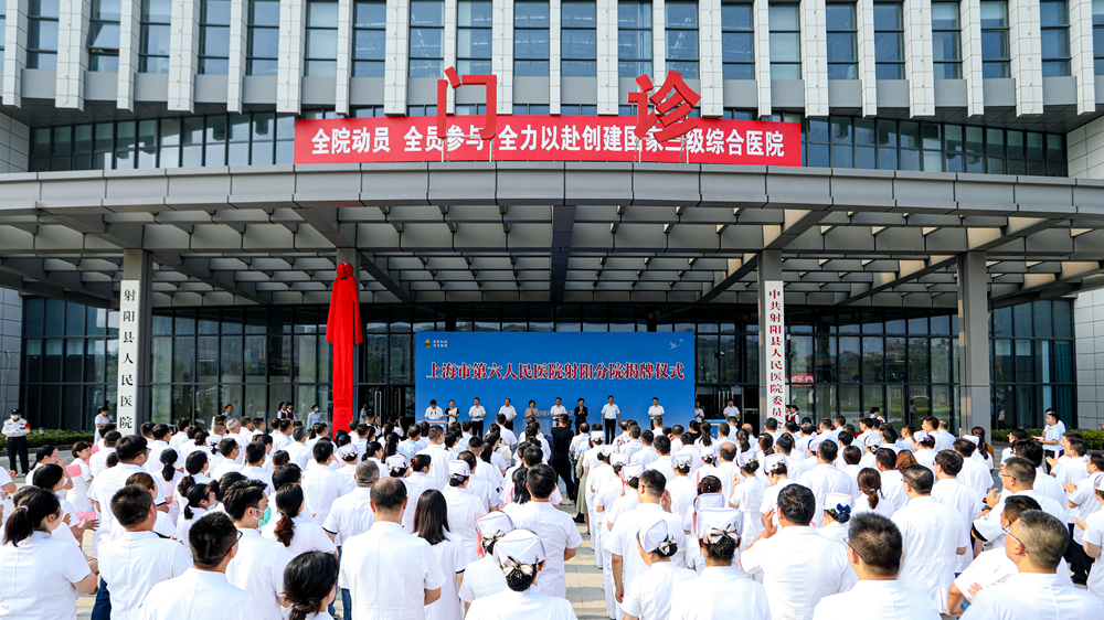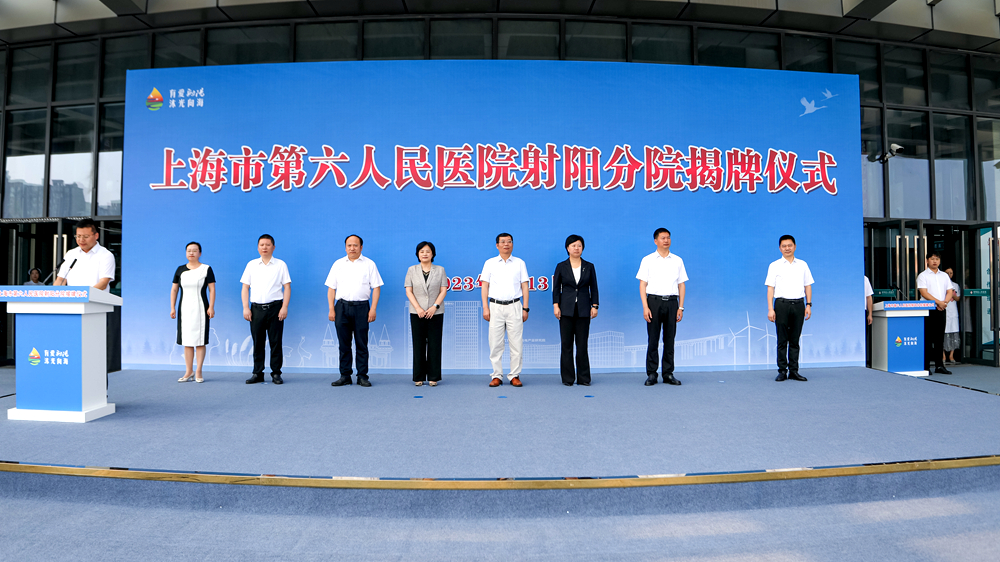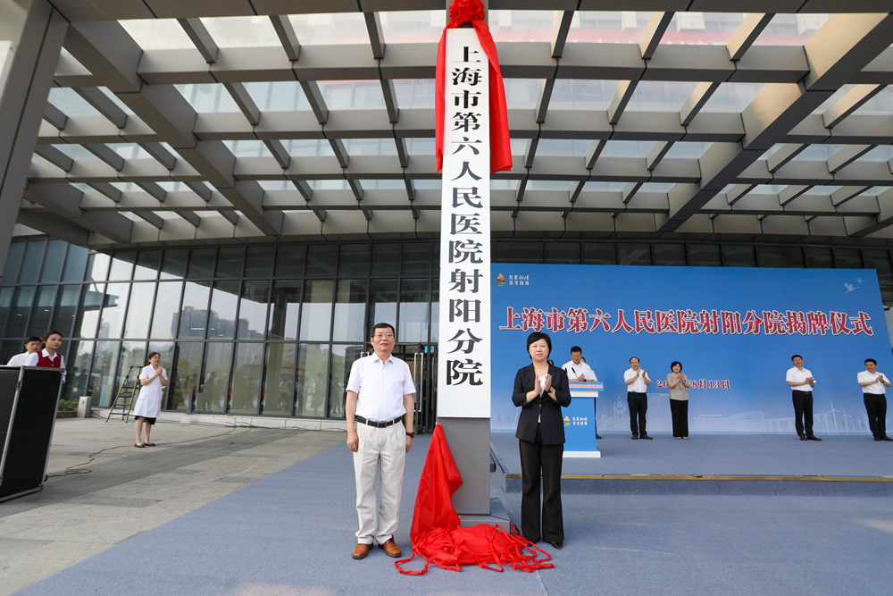 8月13日上午,我县举行上海市第六人民医院射阳分院揭牌仪式暨义诊活动。上海市第六人民医院院长殷善开、县委书记吴冈玉共同为医院揭牌,市卫健委党委书记、主任崔国静出席,县委副书记、县长王宁致辞。