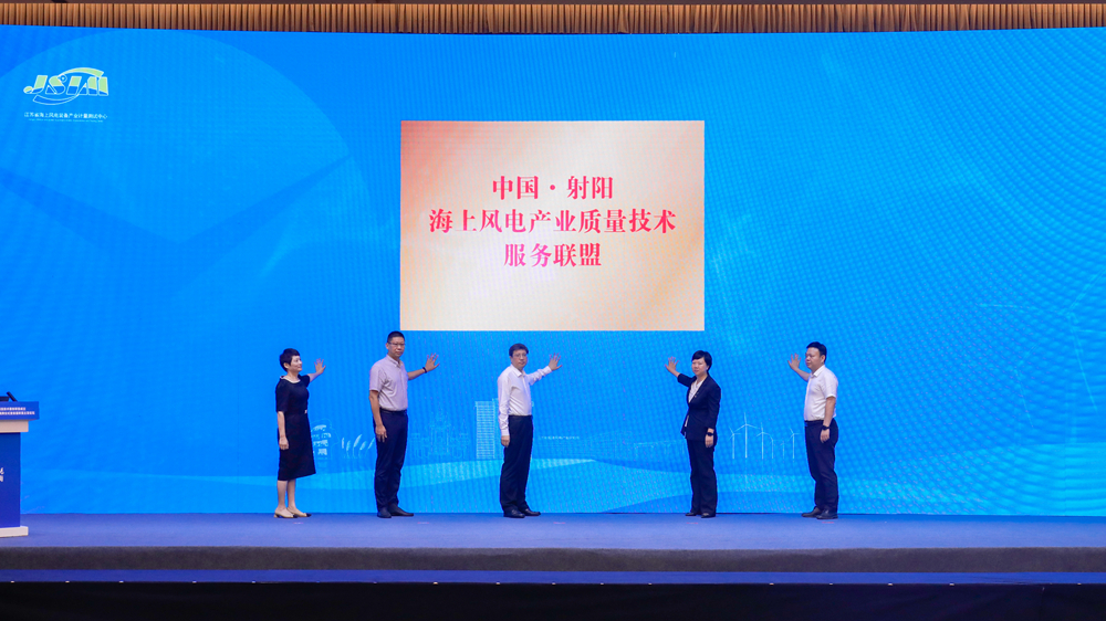 活动中,夏海涛、李林、吴冈玉等共同为“中国·射阳海上风电产业质量技术服务联盟”揭牌;孙蔓莉与市市场监管局副局长王东升共同为“‘苏链检’技术服务专家工作站”揭牌。