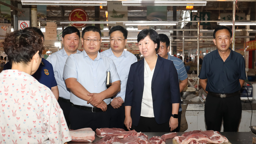 城北菜场设有摊位5000余个,蔬菜、肉类、家禽等货品充足、种类繁多,基本能满足市民日常购菜需求。吴冈玉与商户亲切交谈,认真询问各类商品的进货渠道、价格、销售等情况。她指出,菜市场是居民“菜篮子”供应的重要场所,相关部门要严把食品安全关,统筹做好节日期间保供应、稳物价、促消费各项工作,保障肉、菜、蛋、奶等重点民生商品供应充足、质量可靠、价格稳定。同时,要聚焦标准化、清洁化、规范化菜市场建设,从设施改造、环境改观、秩序改善等方面着手,全力开展城北菜场整治提升行动,让老百姓的“菜篮子”拎得更舒心、更放心。