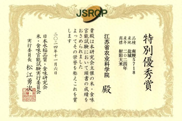经过两轮竞赛,最终,江苏省农业科学院送鉴的南粳46和南粳5718获得“特别优秀奖”,是继2016年南粳46获得中日大米食味品评“最优秀奖”之后再次获得嘉奖。