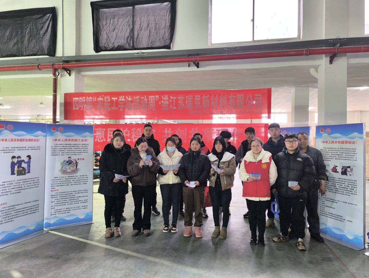 本次活动深入四明社区、四明镇俊嘉服饰加工门市、江苏瑞恩新材料有限公司,通过摆设展板、张贴宣传标语、发放普法礼包、宣传册等方式,重点就社会保险费缴纳、劳动合同履行、工资报酬支付、劳动争议处理、公共卫生安全等农民工最关心关注的法律热点问题,有针对性地开展宣传,并现场为群众答疑解惑,积极引导农民工学法用法,增强法治意识。