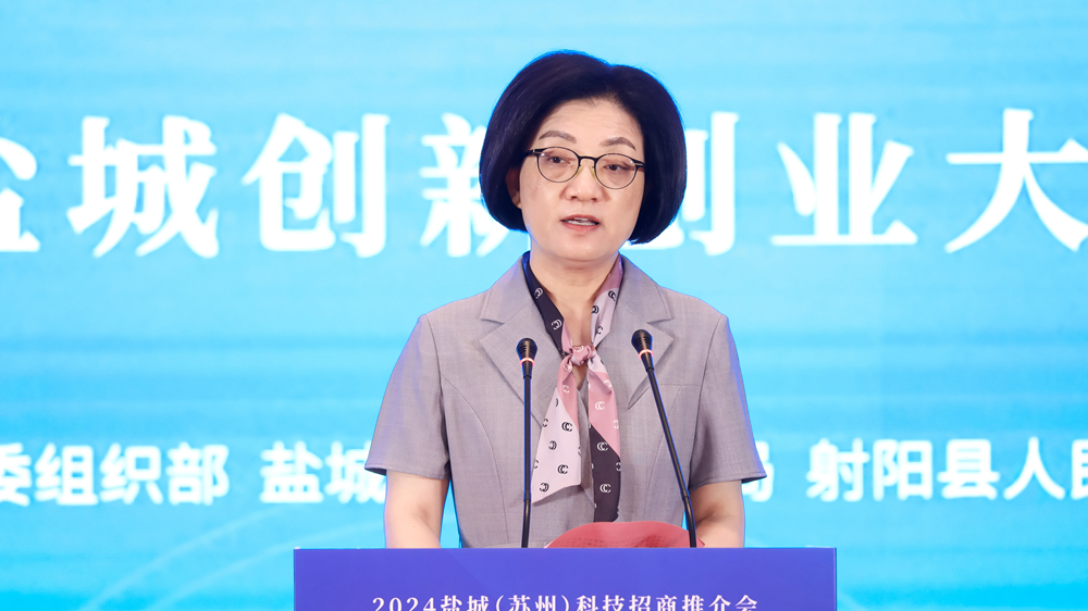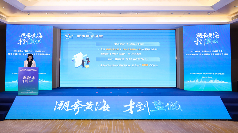 孙红在致辞中向各位嘉宾的到来表示欢迎,并用红、白、绿、蓝四种颜色介绍盐城的沧桑变迁、人文底蕴和产业特色。她说,一直以来,盐城和苏州地缘相近、人缘相亲、文缘相承、业缘相融。近年来,两地互动频繁、交往紧密,人才相互流动、科创合作富有成效,携手书写了繁荣与发展的新篇章。今天的活动,既是创意碰撞、智慧交锋的竞技舞台,更是深化合作、共谋未来的重要举措。希望以此为契机,进一步加强与苏州的交流合作,以赛促创、以赛引才,争取把更多的好项目引到盐城、留在盐城、发展壮大在盐城。欢迎各位嘉宾、各位选手到盐城走一走、看一看,领略盐城的自然生态,感受盐城的发展实践。