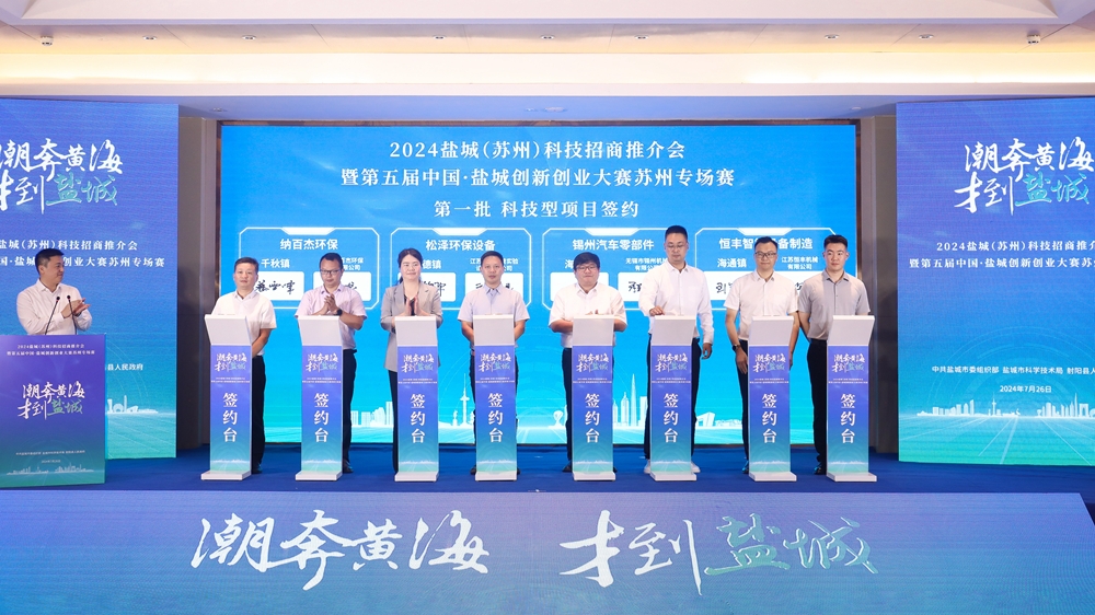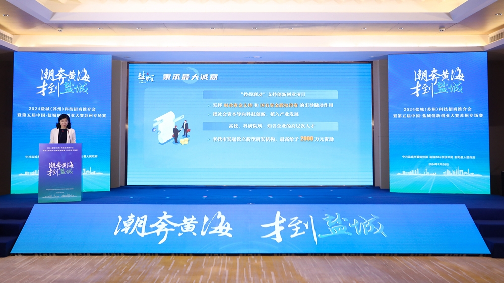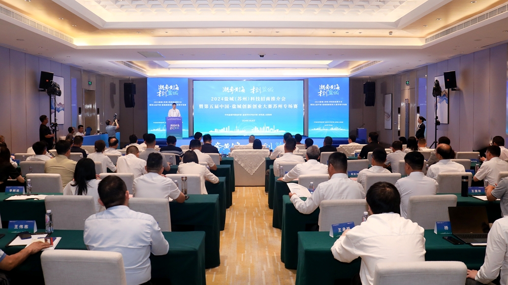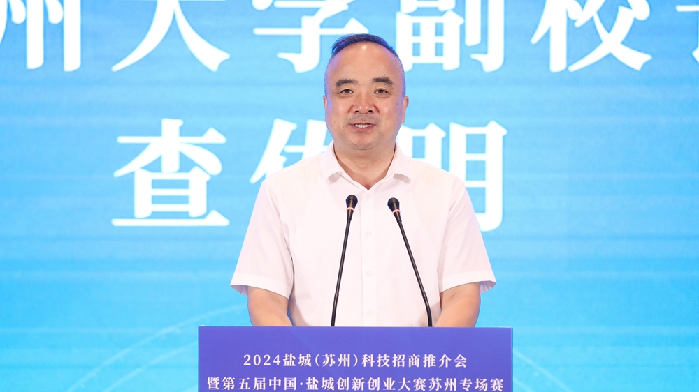 潮奔黄海,才到盐城。7月26日,2024盐城科技招商推介会暨第五届盐城创新创业大赛苏州专场赛成功举行。来自长三角地区及全国各地的科研院所、科技企业、行业协会、科技服务机构、金融服务机构相关负责人和参赛项目代表、人才团队、评审专家等齐聚一堂,共话创新创业之路、共谋人才发展大计。苏州大学副校长查佐明、市科技局局长孙红、县委书记吴冈玉分别致辞。