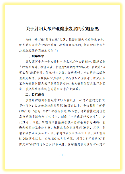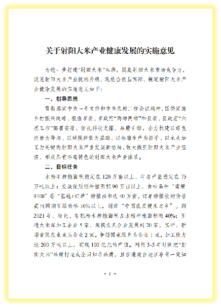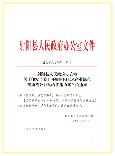 一是加强组织领导。先后制定出台《射阳大米产业健康发展实施意见》《射阳大米产业绿色高质高效行动的实施方案》等一系列指导性文件,专门成立射阳大米产业发展服务专班,统筹负责射阳大米良种培育、产业发展、品牌建设等工作,科学引领射阳大米品牌向更高层次发展。