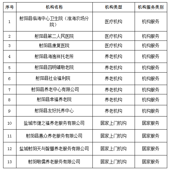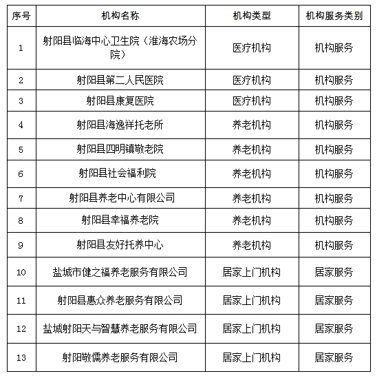 2025年度射阳县拟准入长期护理保险定点护理服务机构名单公示