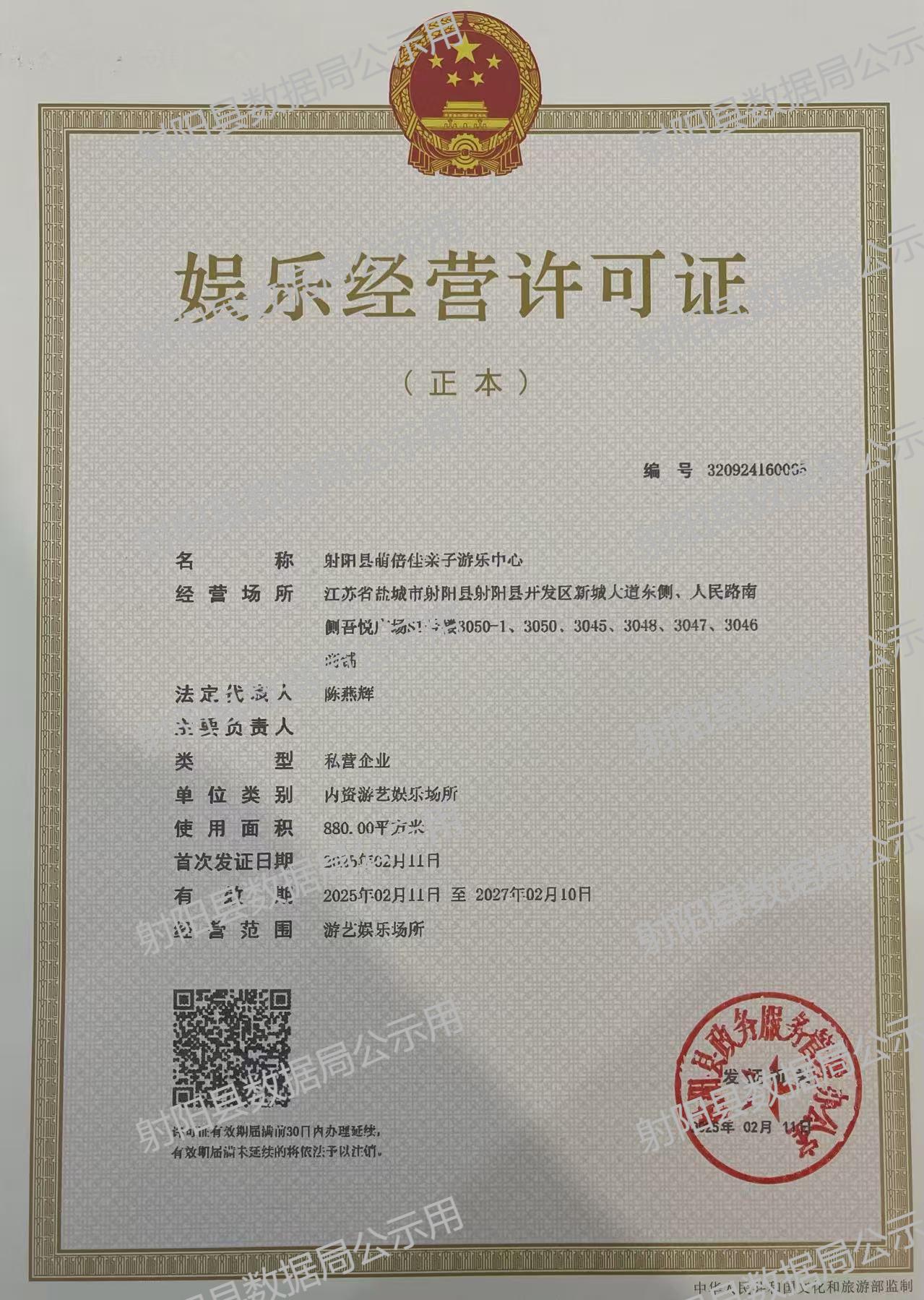 娱乐经营许可信息公示(2025年)