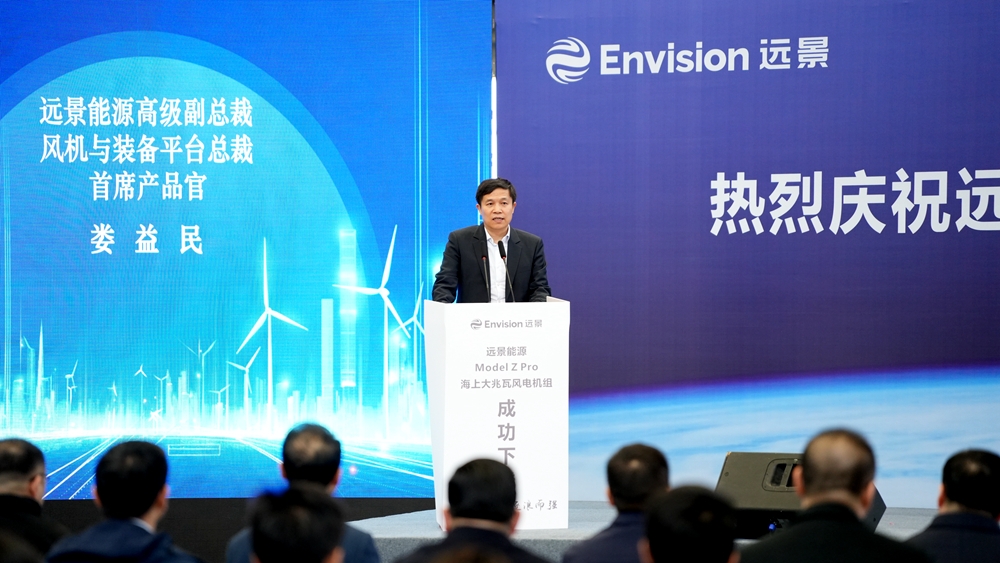 远景能源高级副总裁、风机与装备产品平台总裁、首席产品官娄益民对射阳县委、县政府长期以来对零碳事业的支持与建设表示感谢。他指出,远景作为全球领先的绿色科技公司,始终坚信绿色科技是赋能经济发展、实现可持续发展的关键方向。公司将以此次活动为契机,继续以创新为舟,以可靠为锚,勇迎风电行业的各种挑战,与射阳携手共进,推动零碳事业迈向更高发展阶段。