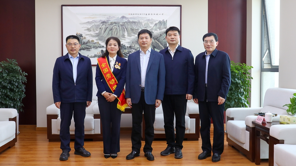 王宁同金开芬亲切交流,了解她的工作和生活情况,对她在岗位上勇于担当、创新进取的精神给予高度赞赏,并勉励她珍惜荣誉、保持本色,再接再厉、再创新功。