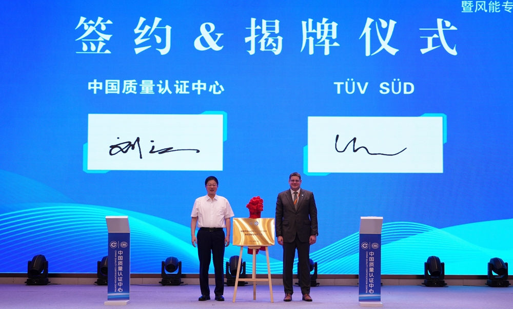 活动现场,中国质量认证中心风能专委会宣布成立;中国质量认证中心——TüVSüD新能源联合创新平台揭牌;中国质量认证中心与全国风力发电标准化技术委员会、浙江大学海洋学院、上海综合能源系统人工智能工程技术中心分别签约。