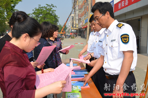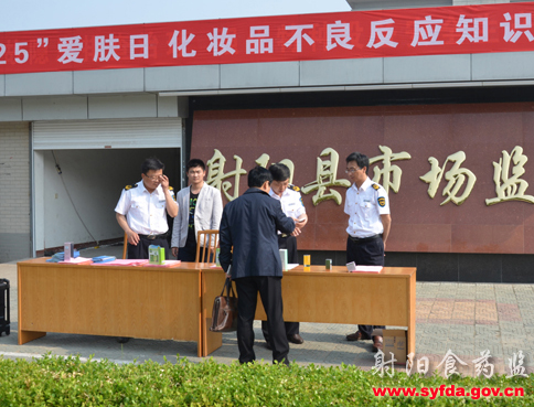 为加大全县化妆品不良反应宣传力度,普及化妆品安全知识,引导公众树立正确的护肤美容理念,5月25日,县市场监督管理局组织开展以“安全护肤,美丽人生”为主题的2016年“5•25爱肤日”宣传活动。现场通过悬挂条幅、设立咨询台、发放宣传手册等形式,向群众宣讲化妆品基本知识、选购注意事项、安全护肤知识、化妆品不良反应及化妆品法律法规等内容。通过宣传,进一步普及了化妆品安全使用知识,提高了消费者对化妆品不良反应的认知,引导消费者科学合理使用化妆品,理性对待化妆品的安全问题,从而推进化妆品不良反应监测工作的顺利开展。图为活动现场工作人员在向群众介绍化妆品不良反应知识。