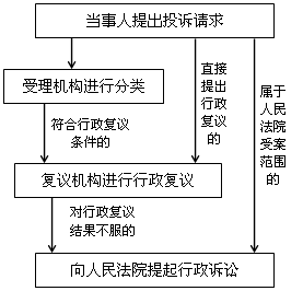 ①行政复议(复议机构) ②行政诉讼(司法机构) |