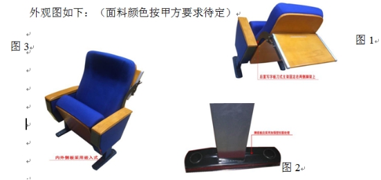 1.报告厅座椅规格为:椅高1000mm,中心距550 mm,椅深720 mm,扶手高600 mm,后置安装折叠式写字板,长400 mm,宽300 mm(详细参数见招标文件第三部分项目需求)。座椅数量为324只。