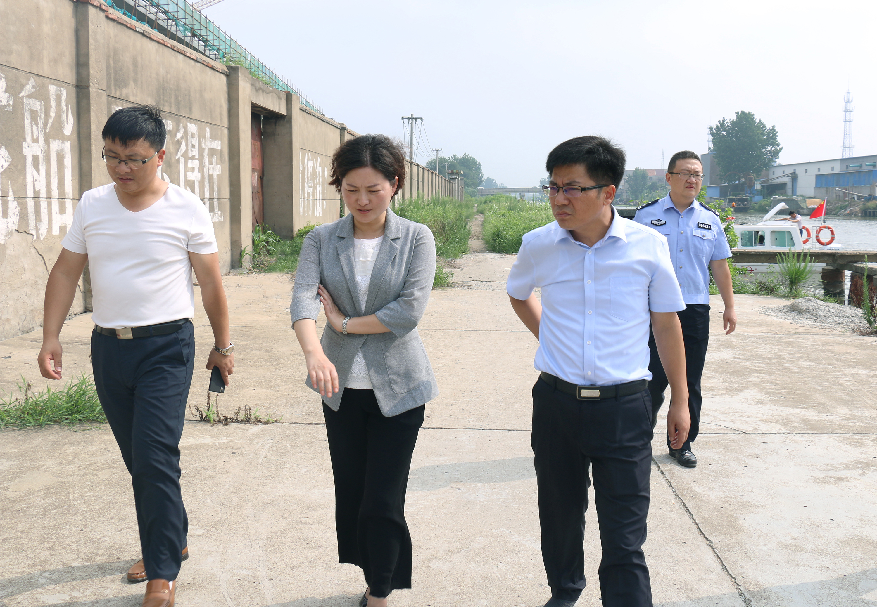8月10日上午,海河县级河长、县委常委、组织部长徐曼乘船巡查海河,并督导海河镇“河长制”工作落实情况,海河镇党委书记陶晓林、副镇长孙永军等陪同。