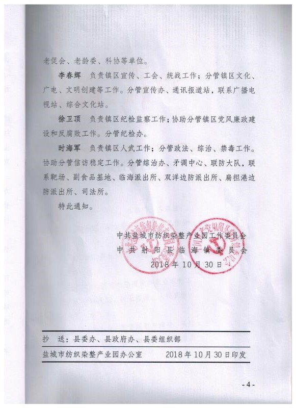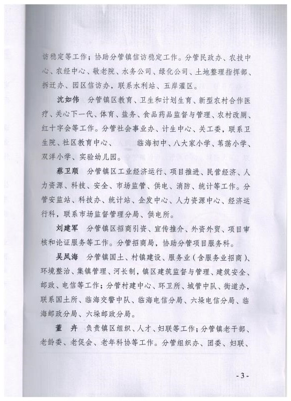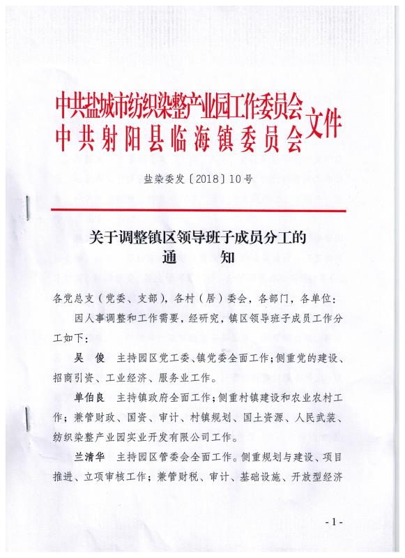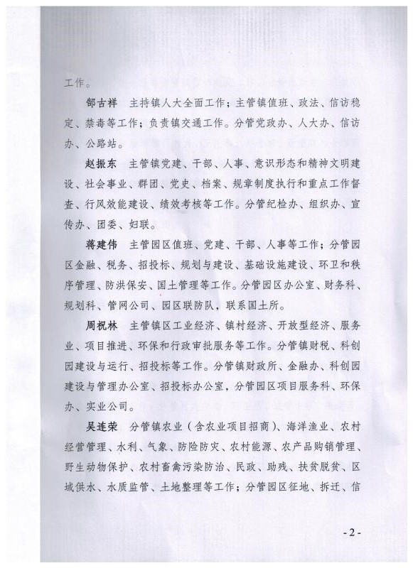 关于调整镇区领导班子成员分工的通知