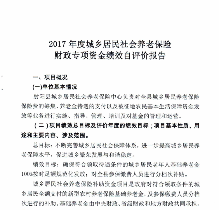 2017年度城乡居民社会养老保险财政专项资金绩效自评价报告