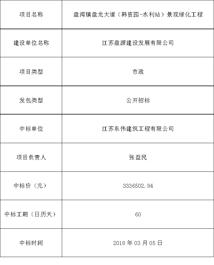 盘湾镇盘龙大道(韩资园-水利站)景观绿化工程中标公告