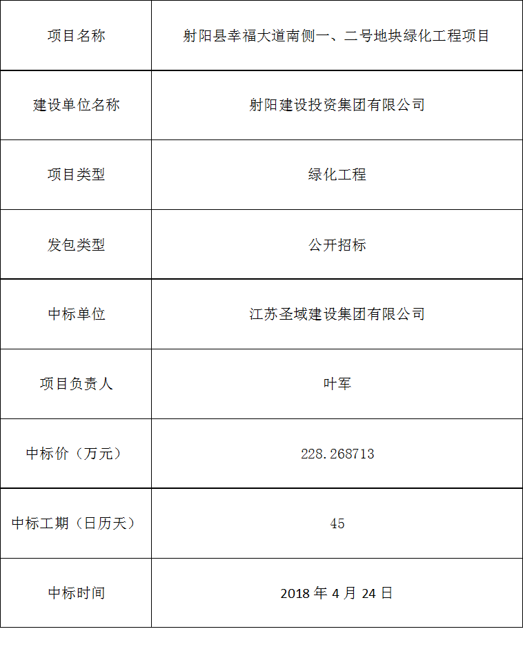 射阳县幸福大道南侧一、二号地块绿化工程项目中标公告