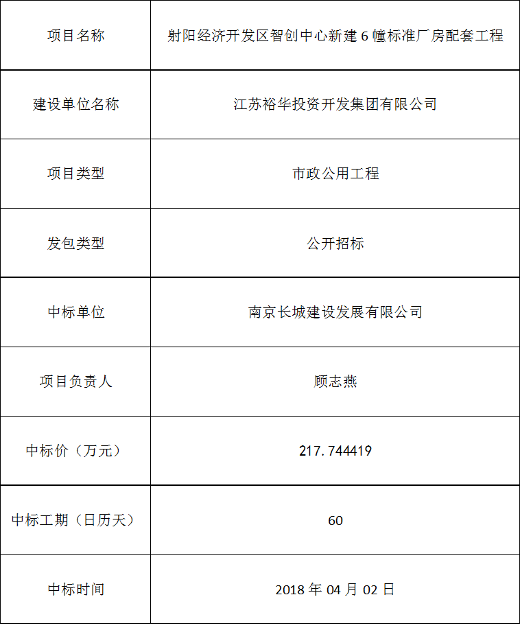 射阳经济开发区智创中心新建6幢标准厂房配套工程中标公告