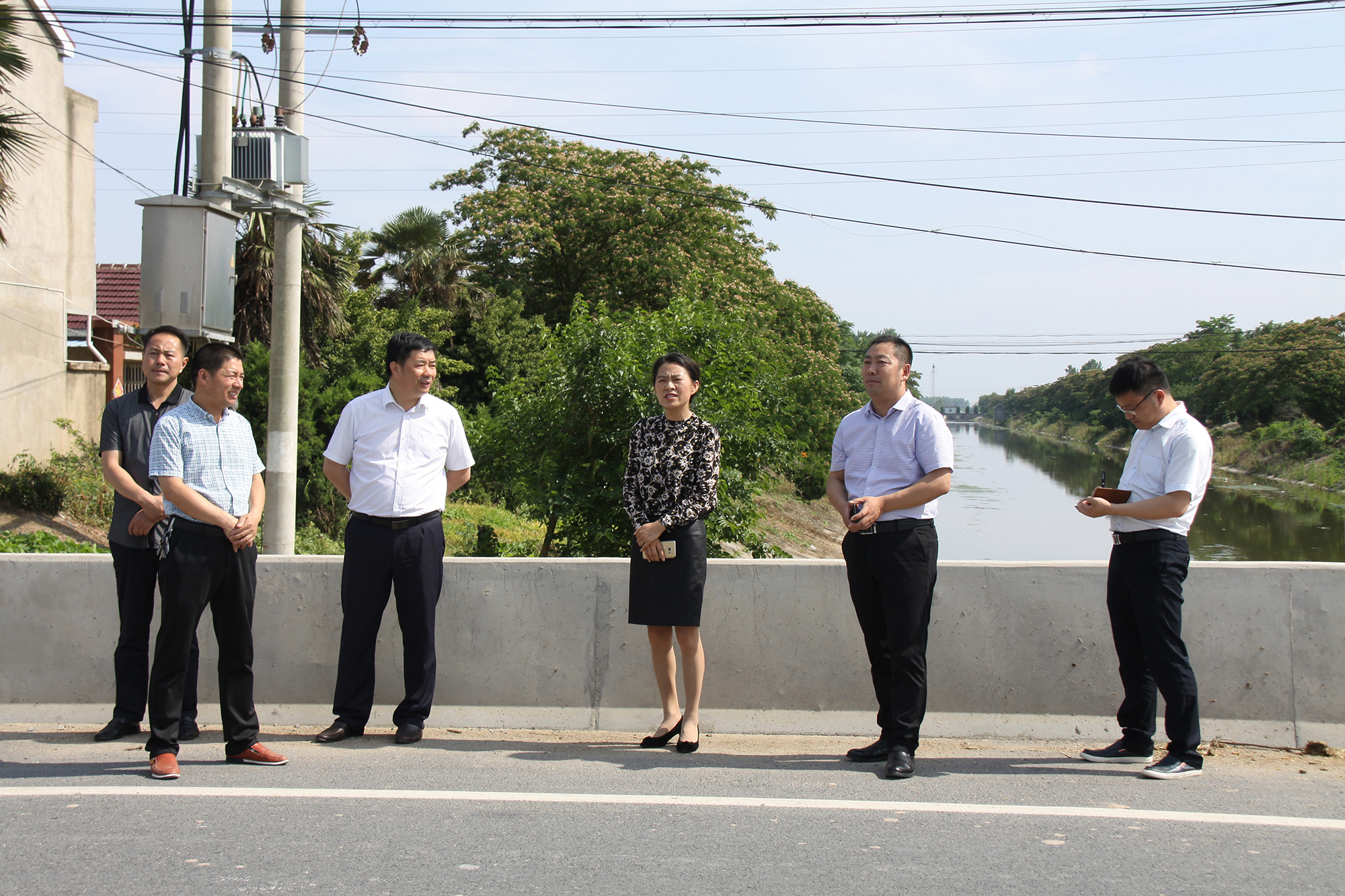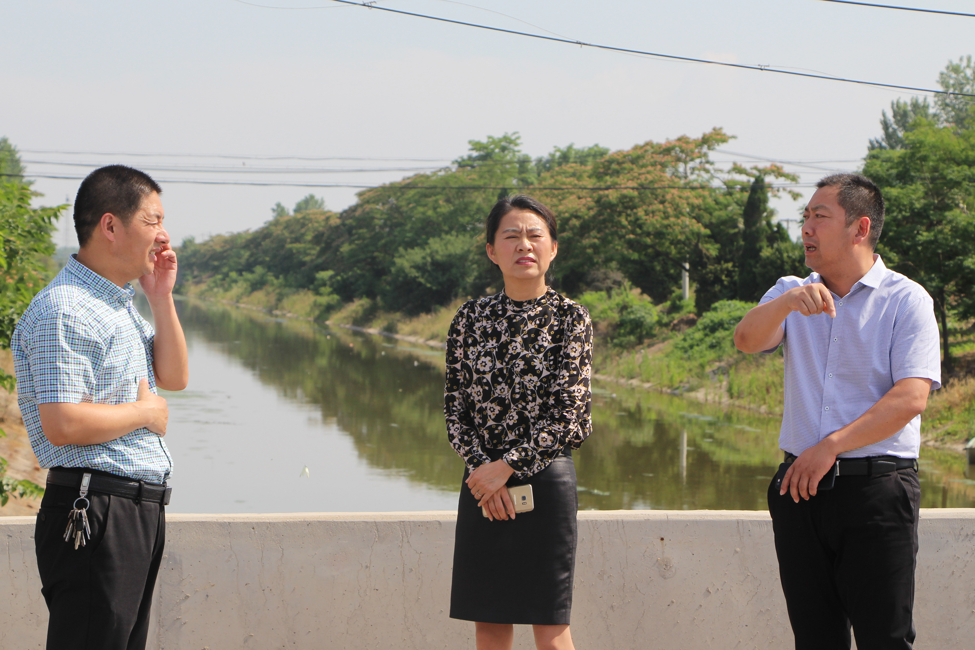 6月21日,五岸干渠县级河长、县人大常委会副主任王占芬巡查五岸干渠,分别察看了五岸干渠千秋镇5009公路桥现场和临海镇整治段现场,河长助理、县国土局杨广汉和县河长办副主任、水利局副局长李枫等陪同巡查。