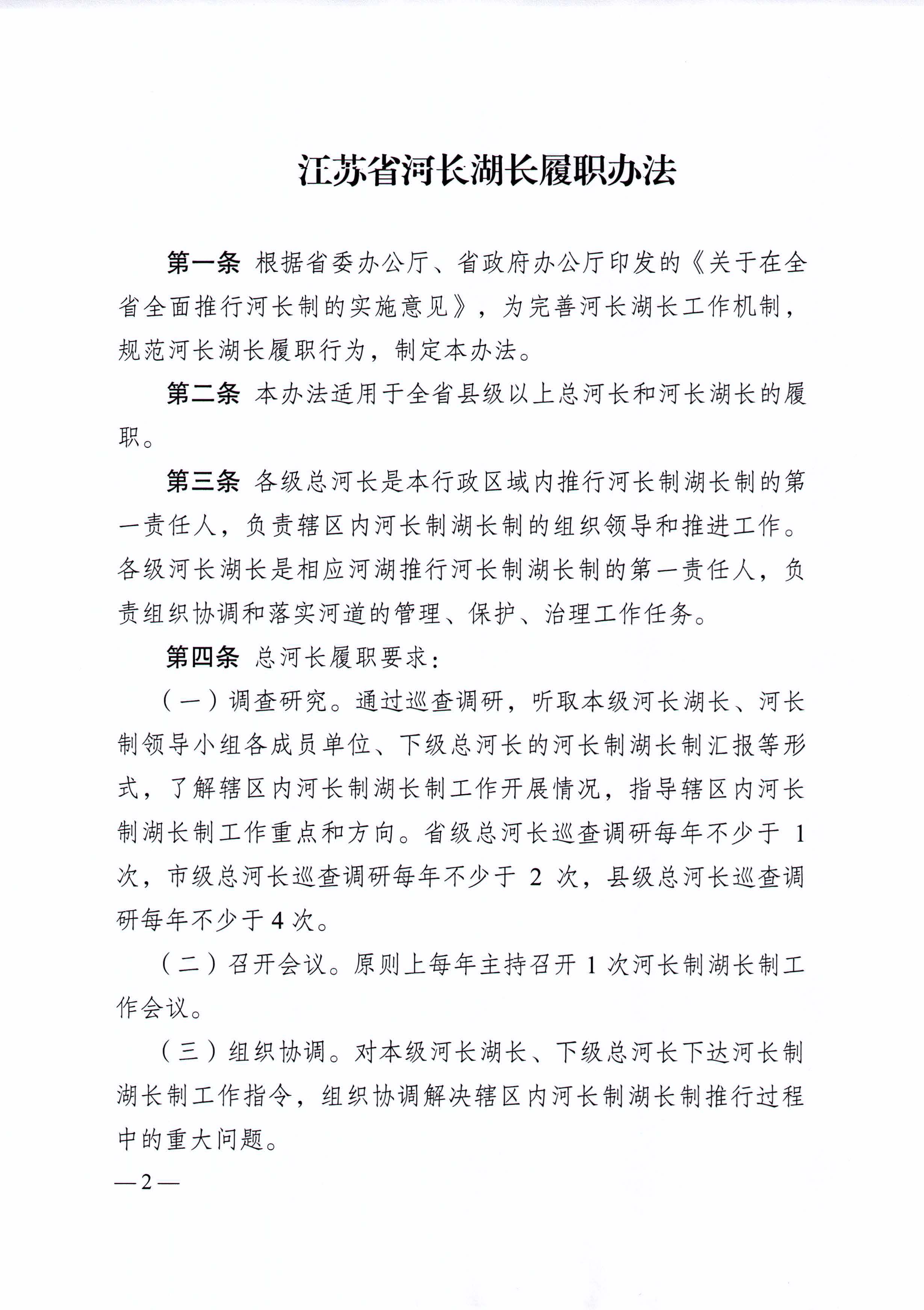 省河长制工作领导小组关于印发《江苏省河长湖长履职办法》的通知