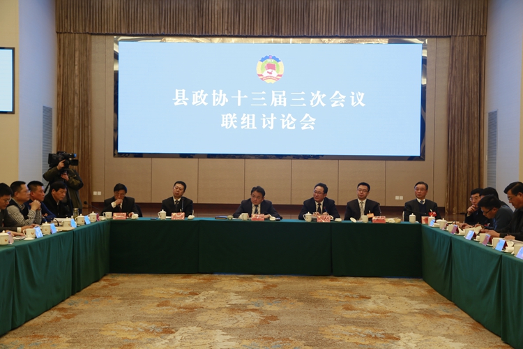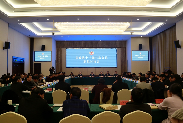 1月8日下午,出席县政协十三届三次会议的县政协委员们对县政协十三届三次会议开幕式上县委书记唐敬讲话及