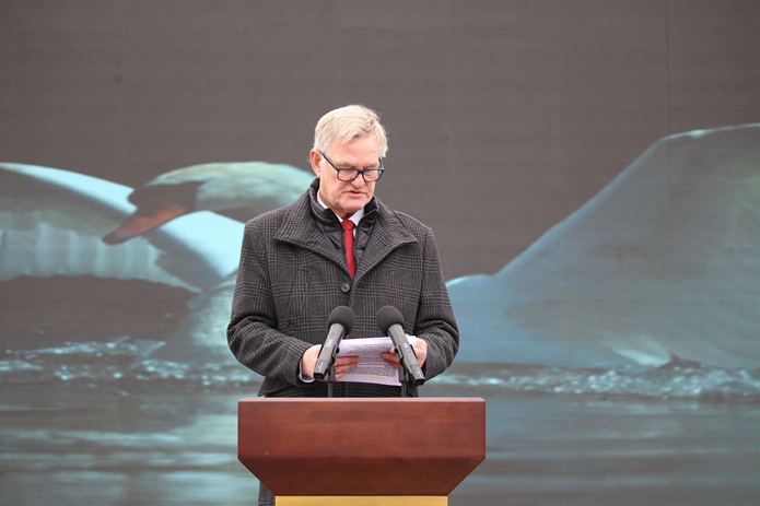本尼·尼伯在致辞中介绍了安徒生的生平。他说,汉斯·克里斯汀·安徒生是个梦想家,他的成功来源于笔下的童话故事。一位印度的哲学家说,所有人都可以在安徒生童话里找到生活中问题的答案,而安徒生童话的精髓就是1843年他所写的童话《丑小鸭》。安徒生还是孩子的时候就有个关于城堡的梦,而射阳安徒生童话乐园将安徒生的梦想变为现实。今天能来到这里见证射阳安徒生童话乐园的开园,是我生命中的重要时刻。希望射阳人民一切安好,都能够到乐园里品读安徒生童话故事,并来到丹麦欧登塞去更多地了解安徒生。