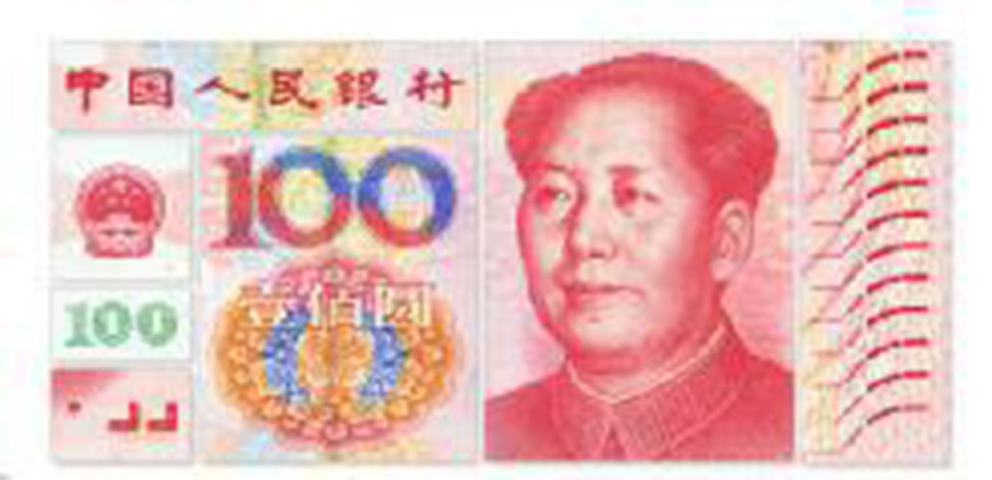 阴阳互补对印图案。应用于1999年版第五套人民币的100元、50元、10元券和2005版的100元、50元、20元以及10元券。在这些券别的正面左侧和背面右侧,都印有一个圆形的局部图案,当我们透过光线观察时,这两幅图案会精确重合在一起,并组成一个完整的古钱币图案。