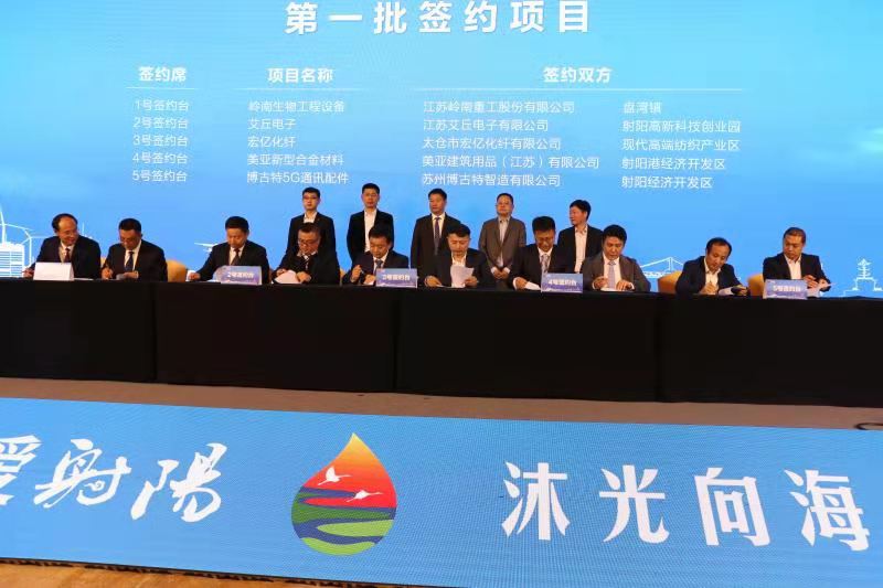 王宁说,近年来,射阳抢抓长三角一体化、长江经济带、江苏沿海开发等重大战略叠加机遇,聚焦项目强县、聚力开放创新,县域综合实力不断提升,连续多年入选全国县域经济百强县、营商环境百强县。射阳产业兴旺、配套完备,是个商机无限、兴业投资的好地方。射阳地处江苏中部,承接南北、通江达海,是长三角北翼新兴的海滨工商业城市。近年来,我县坚持把产业发展摆在突出位置,目前已形成了新能源、电子信息、高端纺织、健康等四大主导产业发展格局,先后吸引比亚迪、远景能源、华能电力、科阳电子等一批行业领军企业落户发展,引进建成保利泰克防雷测试中心等重大科创平台,产业链配套日趋完善。同时我们持续推进产业园区建设,建成省级射阳经济开发区和射阳港经济开发区、市级现代高端纺织产业区和高新科技创业园等4个高标准园区,具备承接重大项目的基础条件。此次集中签约的20个项目,与我县主导产业契合度高、关联性强,必将为射阳高质量发展注入强劲动能。射阳政通人和、便捷高效,是个蓬勃发展、充满活力的好地方。近年来,我县致力把射阳打造成江苏营商环境最优县份,在盐城率先推行“拿地即开工”“交房即发证”“交地即发证”“发证即办抵押”,苏北首家执行“非工作日办证”模式,征地保障“不见面”审批、“八证联发”等多项做法被全省推广,确保为每一个项目从招引到签约、开工、建设、竣工、投产,提供“全生命周期”的“管家式”服务。同时,射阳先后历经了三次移民,亲商厚友、开放包容的人文传统在这里孕育,四通八达的现代化综合交通运输体系全面构建,商港空港渔港齐备,高铁高速高等级公路俱全。随着盐射高速在明年6月份正式通车,我县将全面融入盐城大市区半小时通勤圈和上海南京2小时、杭州2.5小时、北京3小时经济圈。射阳水秀林荫、风光旖旎,是个怡情养性、安居乐业的好地方。射阳地域广阔,县域总面积7730平方公里,其中海域面积5130平方公里,是江苏海域面积最大的县份、江苏陆域面积第四大县份。绵延千里的湿地滩涂景色壮美,蜿蜒曲折的射阳河穿境而过,林木覆盖率江苏省第二,空气质量优良天数江苏第一,国家级丹顶鹤珍禽自然保护区60%在我县境内。日月岛生态旅游区列入国家优选旅游项目,获评全省唯一的“全国森林康养基地试点建设单位”。同时,我们聚焦民生服务,持续提升城市精细化管理水平,高标准打造教育、医疗、康养、文化等城市功能,按照三级医院标准打造的县人民医院新院区投入使用,千鹤湖市民公园、安徒生童话乐园、吾悦广场、全民健身中心等城市新地标建成开放,智慧农贸市场、市民阅读空间、城市口袋公园等遍布城市各个区域,满足市民现代生活的多样需求,是每一位到访者宜居、宜业、宜游的温馨家园。