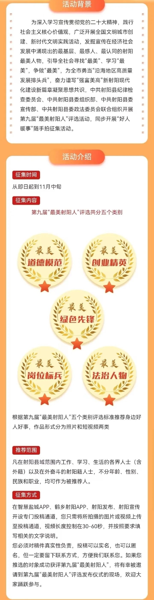 第九届“最美射阳人”好人暖事随手拍期待您的参与!