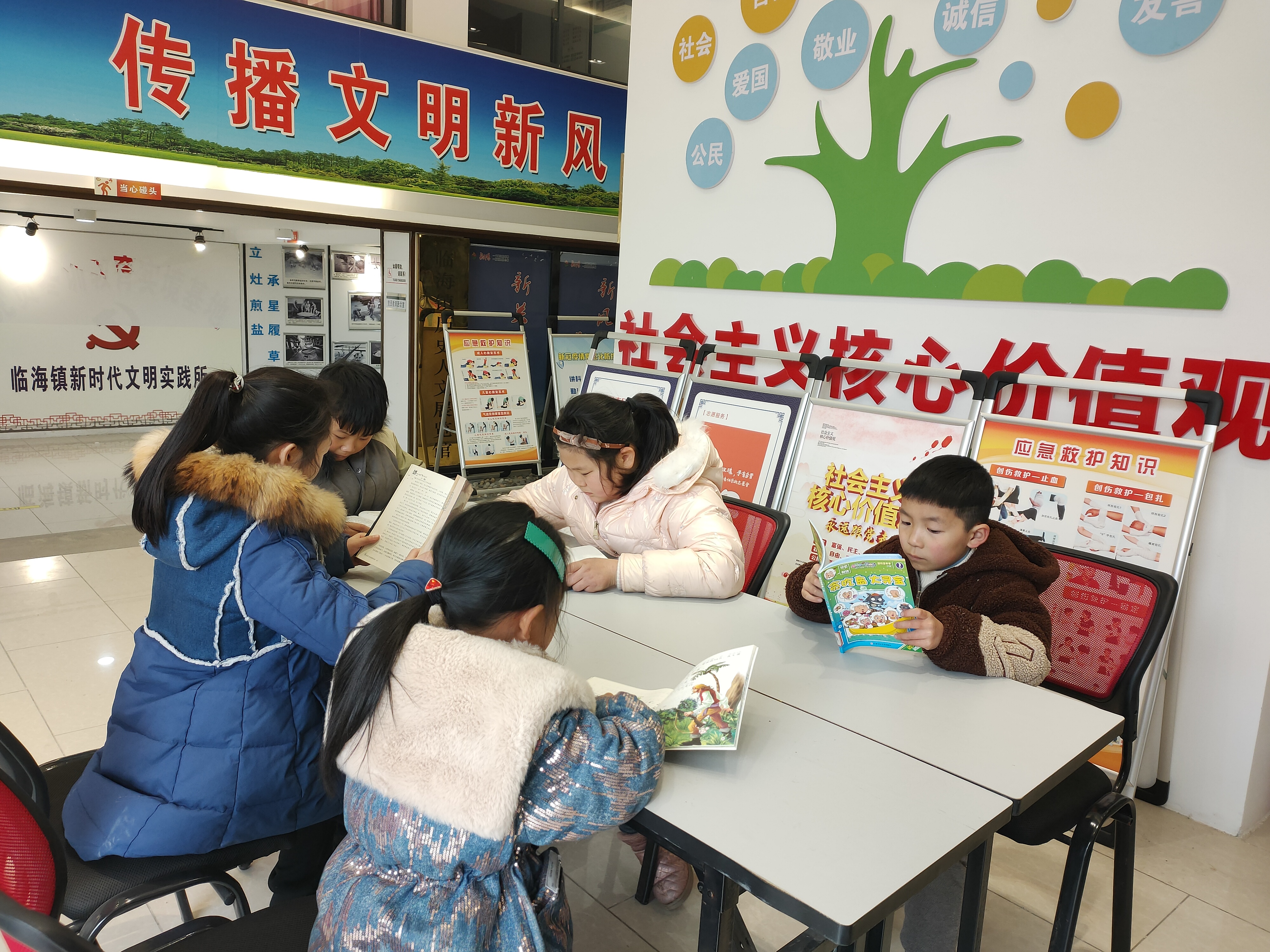 2月8日临海镇新时代文明实践所开展“书香润心灵,好书伴成长”活动