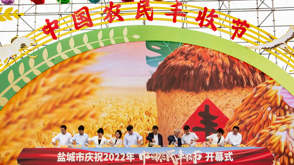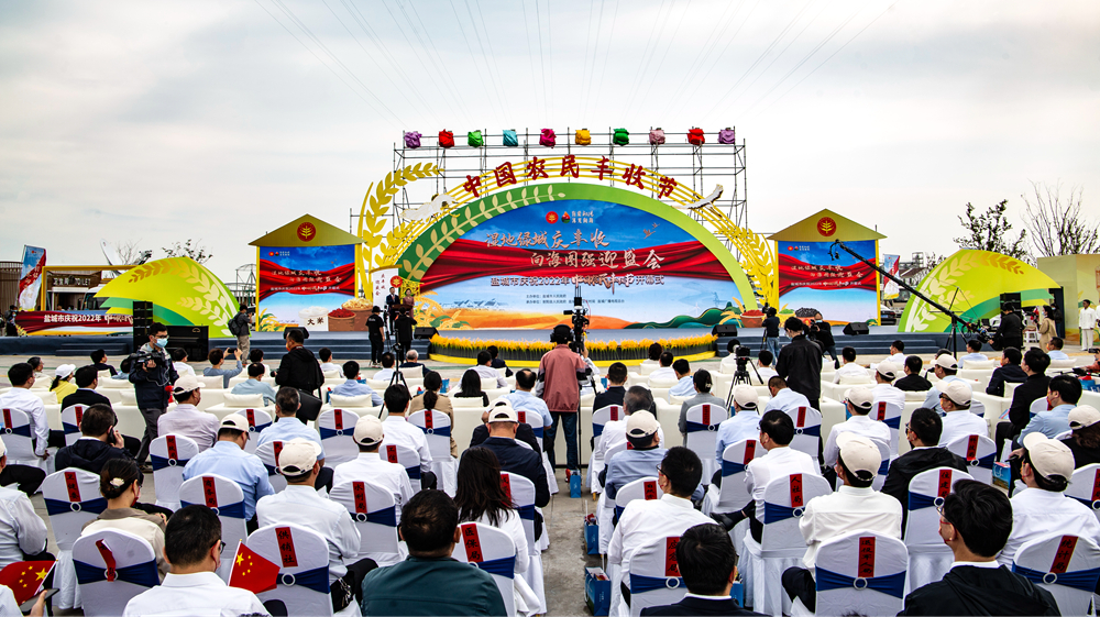 正是一年秋分至,“粮”成美景丰收时。9月23日,2022年中国农民丰收节盐城庆祝活动在海河镇四季果香现代农业科技产业园举行。市委书记徐缨代表市委市政府向活动的举办表示热烈祝贺,向全市广大农民朋友及奋战在“三农”战线的同志们致以诚挚慰问。来自全国各地的特邀嘉宾、客商、农民群众代表及社会各界人士约300多人欢聚于此,共贺第五个中国农民丰收节。江苏省农业农村厅总农艺师唐明珍,省委农村工作领导小组原副组长、省农村经济学会会长胥爱贵,原农业部稻米及制品质量检验测试中心党委书记、首席科学家金连登,市委副书记、统战部部长羊维达,副市长王娟,县委书记吴冈玉,县政协主席邱德兵,县委副书记葛兆建等出席活动。唐明珍、羊维达、吴冈玉分别致辞。