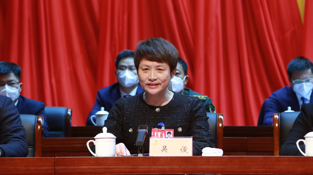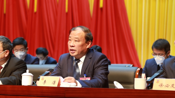 李洁向大会报告县政协十四届二次会议提案初步审查情况